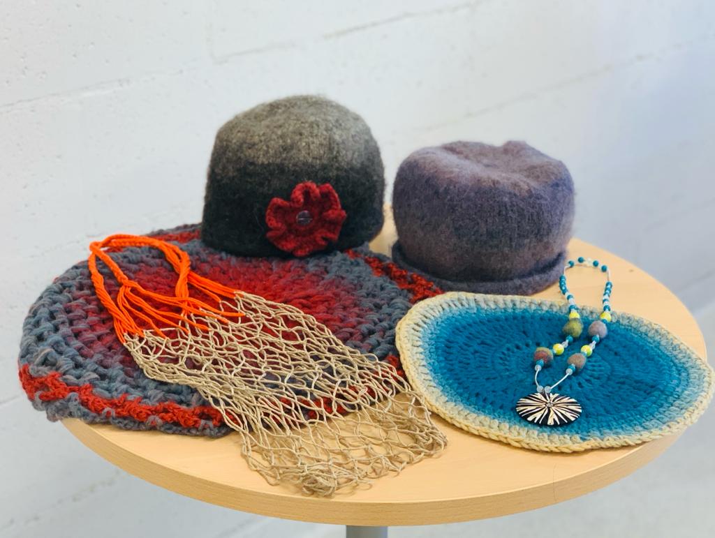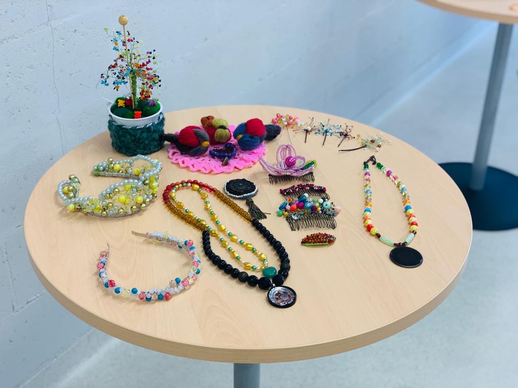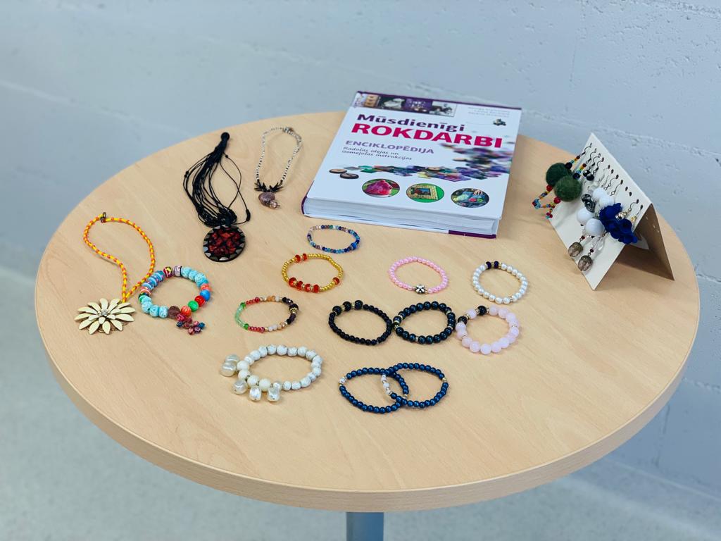 Handicrafts made by prisoners within the framework of the ESF project Informal Education Program are displayed in the exhibition of the Addiction Center of Olaine prison.